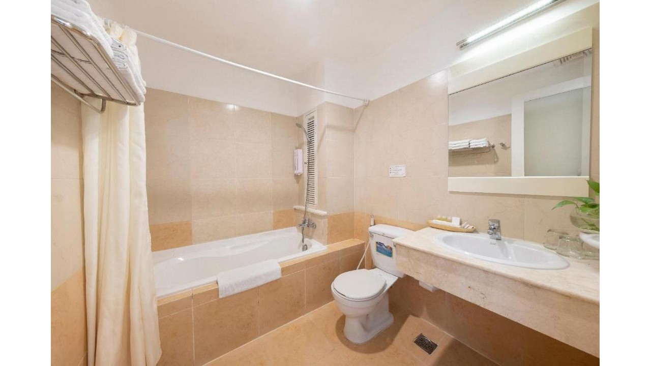 Sạch sẽ nhân viên lễ tân nhẹ nhàng nhiệt tình. Vòi nước hơi yếu phòng hơi nhỏ. Bình dân nói chung ơn.