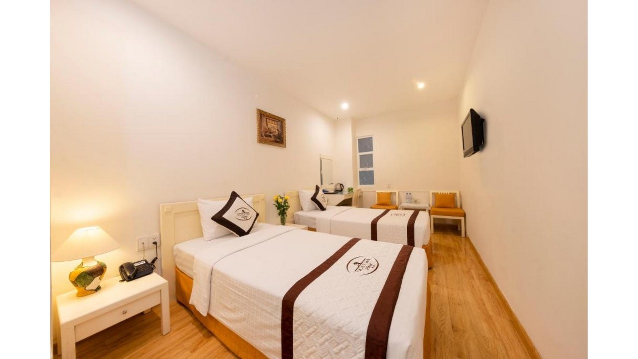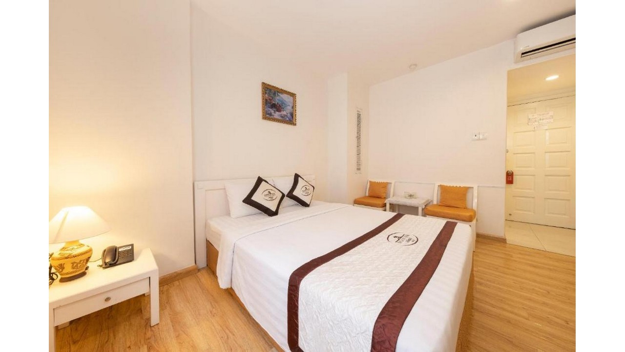 Khách sạn nằm đối diện chợ bến thành, ngay khu trung tâm quận 1. Bạn có thể thoải mái đi bộ dạo quanh các điểm du lịch của quận 1 mà không tốn chút sức lực nào.Khách sạn có phục vụ ăn sáng từ 6:30-9:00, tuy nhiên phải chờ khá lâu nếu đông khách. Giá cả khá tốt, phù hợp cho khách đoàn và việt kiều