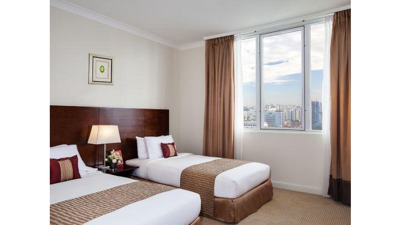 Khách sạn ở quận 1, trung tâm vị trí thuận tiện. Diện tích rộng, phù hợp với gia đình. Bữa sáng ko nhiều lựa chọn, phục vụ hơi chậm.